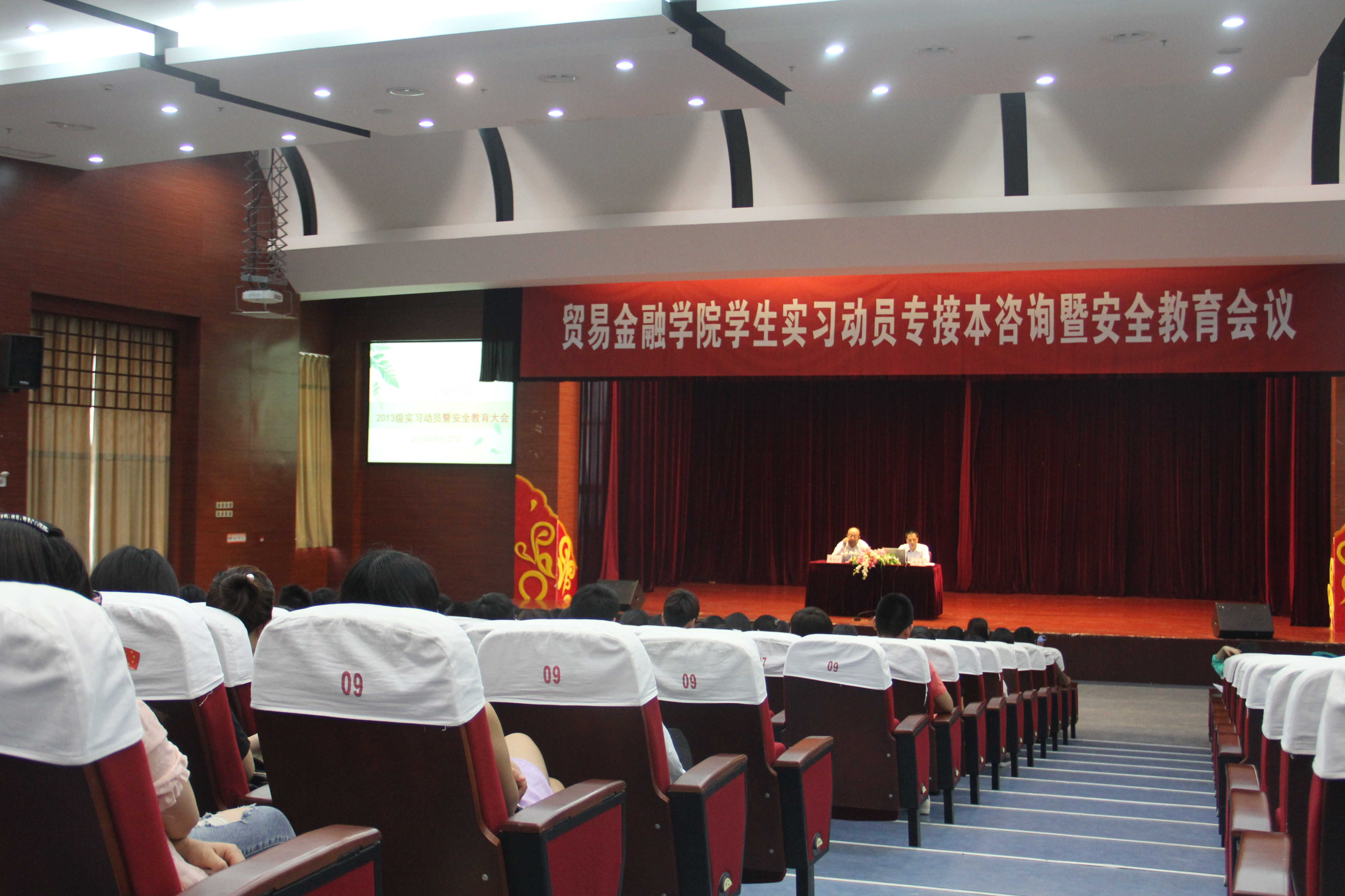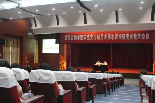 为促进专业顶岗实习的顺利开展,保证实习质量,深化实习效果,促进实习法律思维,5月27日下午,贸易金融学院在图文信息中心大报告厅召开2013级学生专业顶岗实习动员暨安全教育大会。贸易金融学院院长鲁继业、党总支书记赵宏宾、相关辅导员、实习班班主任以及2013级全体学生参加了此次大会。