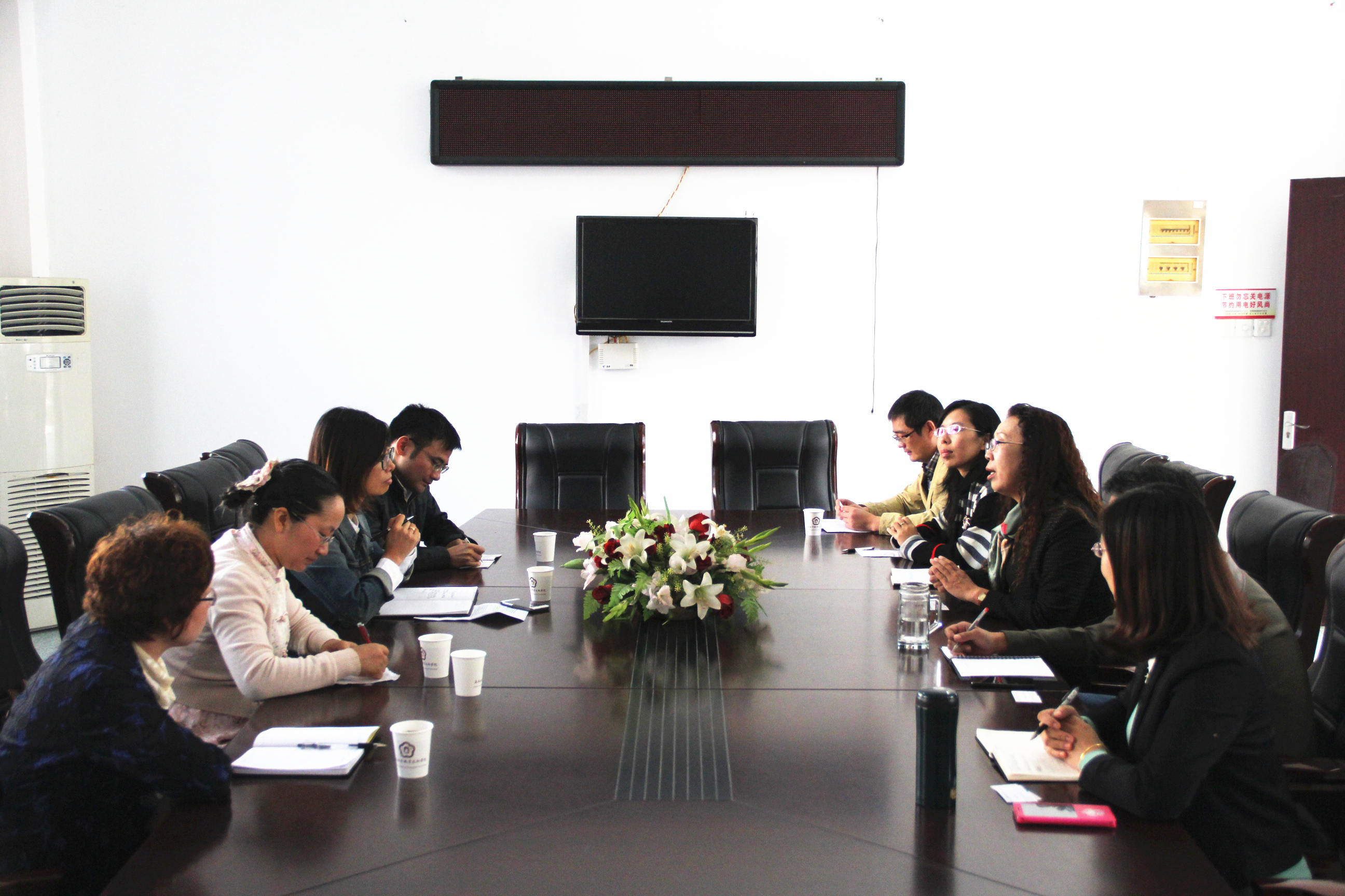 10月28日,无锡职业技术学院外语与旅游学院院长杨丽,旅游系副主任许刚,任课教师陈红、陈颖一行来我院旅游学院交流,就专业建设、管理经验以及党建思政工作进行考察交流,旅游学院副院长李光宇,党总支副书记陈霞和旅游学院教师代表参加了交流会。