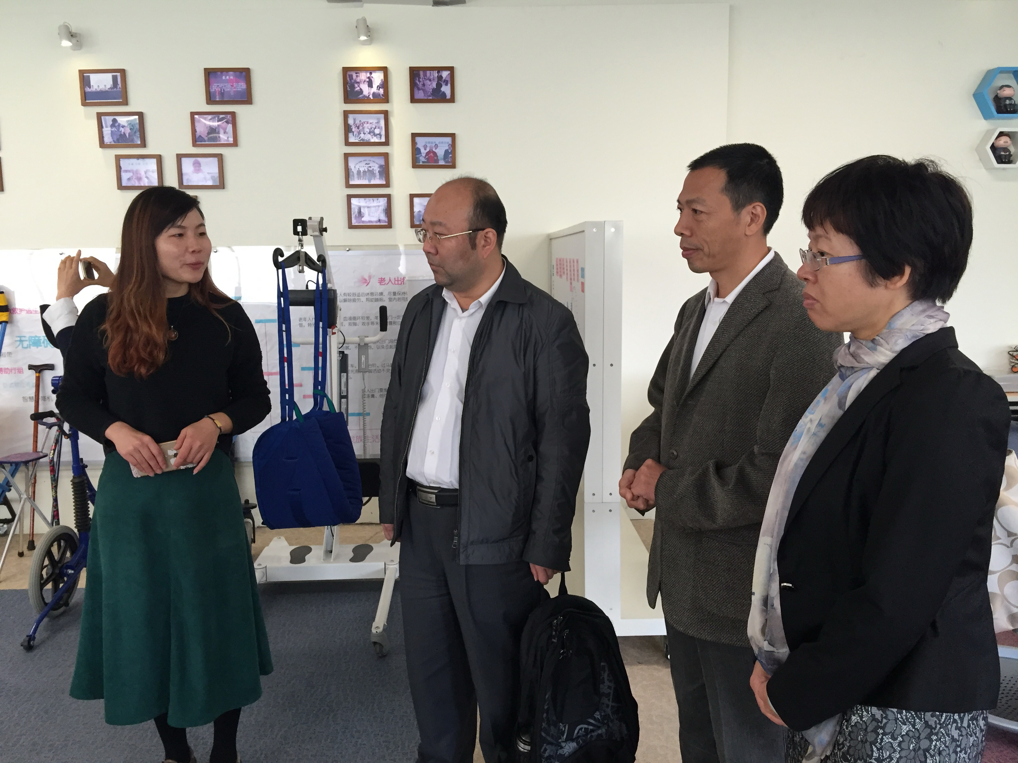 江苏经贸职业技术学院是江苏省教育厅直属全日制公办普通高校,国家示范(骨干)高职院校,老年产业管理学院于2006年创建,目前已成为国家级“爱心护理工程人才培养基地”、“老年心理关爱研究中心示范基地”、“江苏省老年产业人才培养基地”、“江苏省老年产业培养实训基地”、“江苏省中高级养老护理员培训基地”和“民政行业技能鉴定培训基地”。调研组一行受到江苏经贸职业技术学院副院长储锦超和老年产业管理学院院长石晓燕热情接待,此行先后进行了实地考察实验室建设和座谈研讨等活动。
