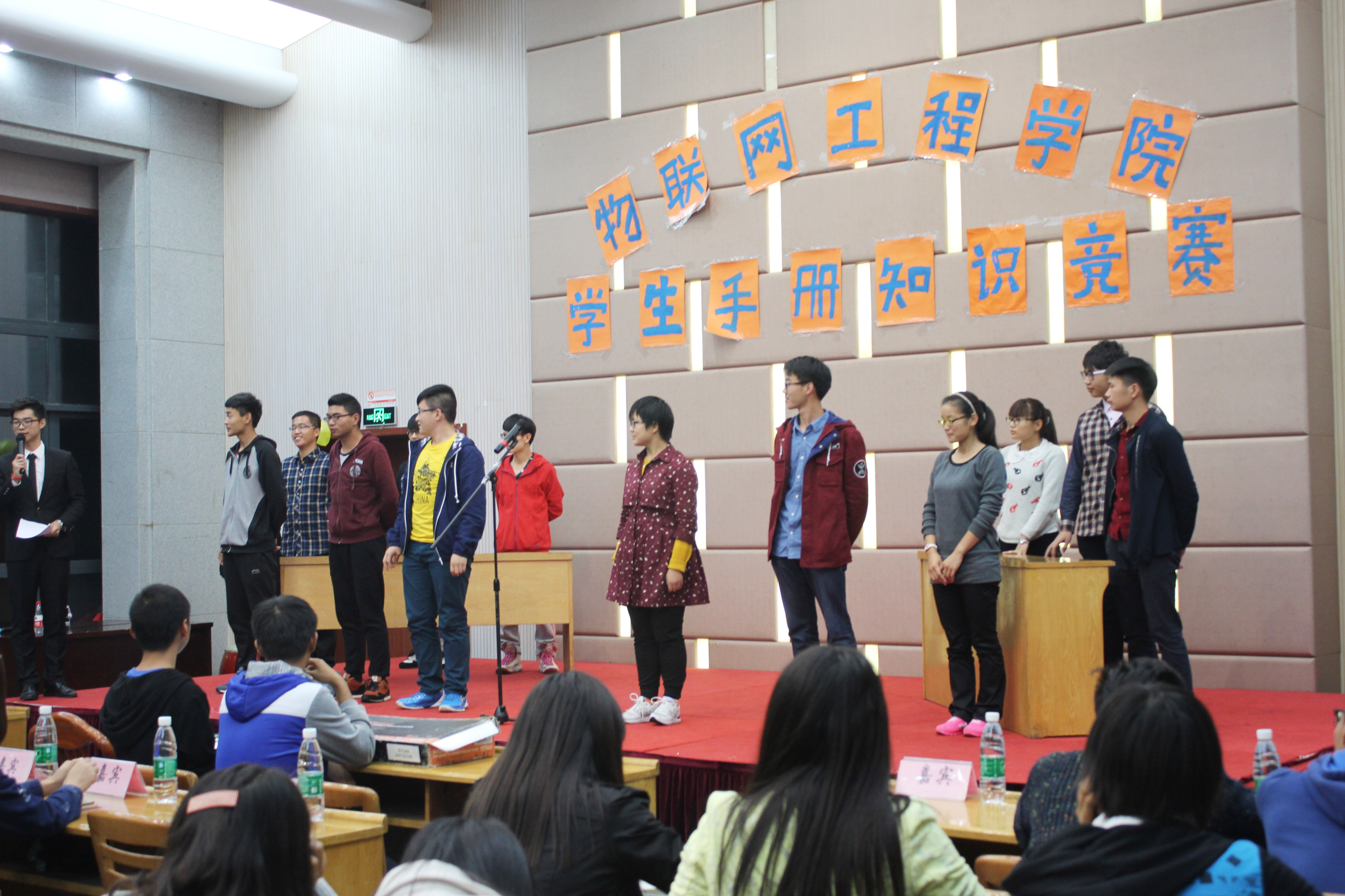 十月份,物联网工程学院举办了学生手册知识竞答,此次竞答共涉及2015级13个班级,经过初赛的激烈角逐,10月29日晚,学生手册知识竞答决赛在院小报告厅举行,决赛借鉴综艺节目《一站到底》的形式,经过比拼,计应1501班夺得团体冠军。此次学生手册竞答覆盖学生面广,经过此次竞答,2015级学生均表示对于学生手册相关规定有了进一步了解,这也有助于他们自觉规范自身行为,营造良好班风学风。