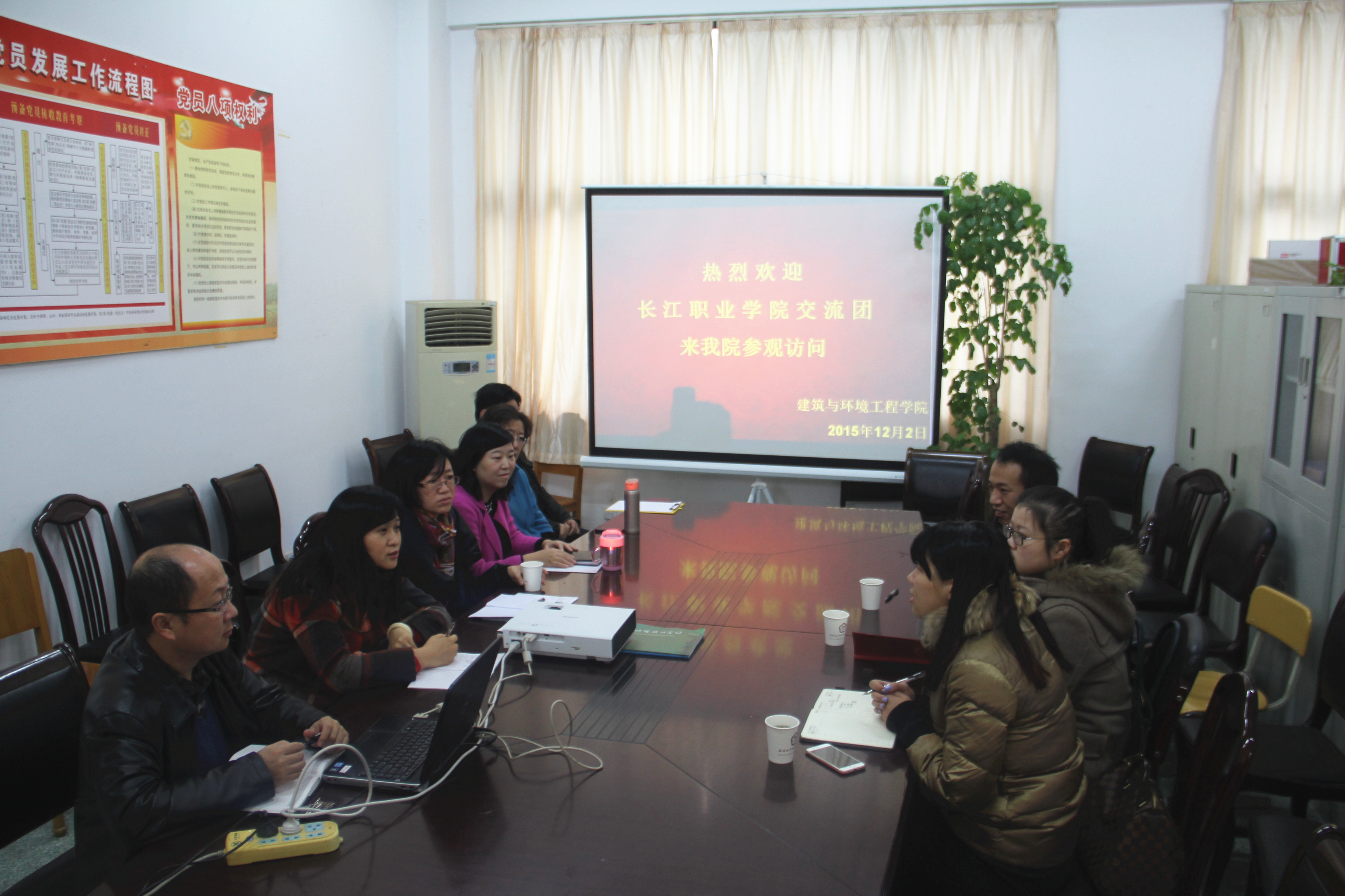 12月2日,长江职业学院房地产经营与估价、建筑装饰工程技术专业教师代表来我院参观交流。建筑与环境工程学院副院长陈炜、院长助理杨敏及房产、建装专业教师参加了此次会议。