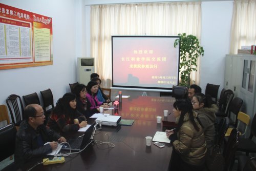 陈炜副院长代表学院欢迎长江职业学院教师一行的到来,并简要介绍了我院的发展历程,建装、房产专业的专业设置、招生就业等情况。长江职业学院房产专业教研室主任则介绍了该学院近几年的发展状况及来访目的:长江职业学院位于湖北武汉,是湖北省教育厅直属的公办全日制普通高等学校,建工学院是其九大学院之一,拥有建筑类和设计类两大专业群,现在正处在寻求不断发展与提升阶段。此次来访主要是了解学习江苏地区建筑类职业院校的发展及专业建设情况。