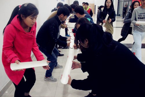 12月1日下午,一场学院与学院间互动融洽、热情四溢的学生素质拓展训练在我院北校区体育馆举行。来自物联网工程学院与国际合作学院的60余名学生共同参与了活动。