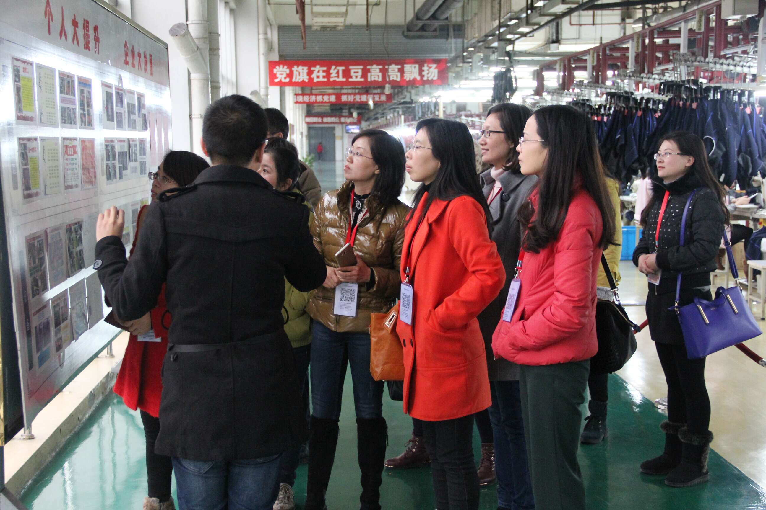 红豆集团是江苏省重点企业集团,以创民族企业为己任,集团有13家子公司,其中上市公司2家。多年来,凭借品牌党建,红豆集团党委先后被评为江苏省“先进基层党组织”、“全国先进基层党组织”和“全国非公有制企业双强百佳党组织”等称号。本次参观学习旨在以红豆党建“样板”建设来推动旅游学院基层党组织的创新实践。在工作人员带领下,我院党员观看了红豆集团党建工作视频,参观了红豆集团特色标准示范化车间党员示范岗、红豆杉育秧车间以及红豆集团展史馆。