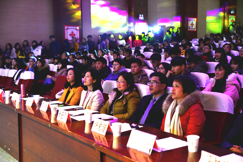 会后,由学生自编自演的迎新文联欢会隆重上演。帅气迷人的双截棍为大家展示了真正的男儿本色;古筝独奏《画心》温婉动人;诗歌朗诵《您好,2016!》震撼人心;拉丁舞表演刚柔并济,街舞表演动感酷炫,民族舞表演更是异域风情浓厚;改编小品《甄嬛传》幽默诙谐、趣味十足,赢得台下观众阵阵欢笑;杨艳、朱瑞老师《Super