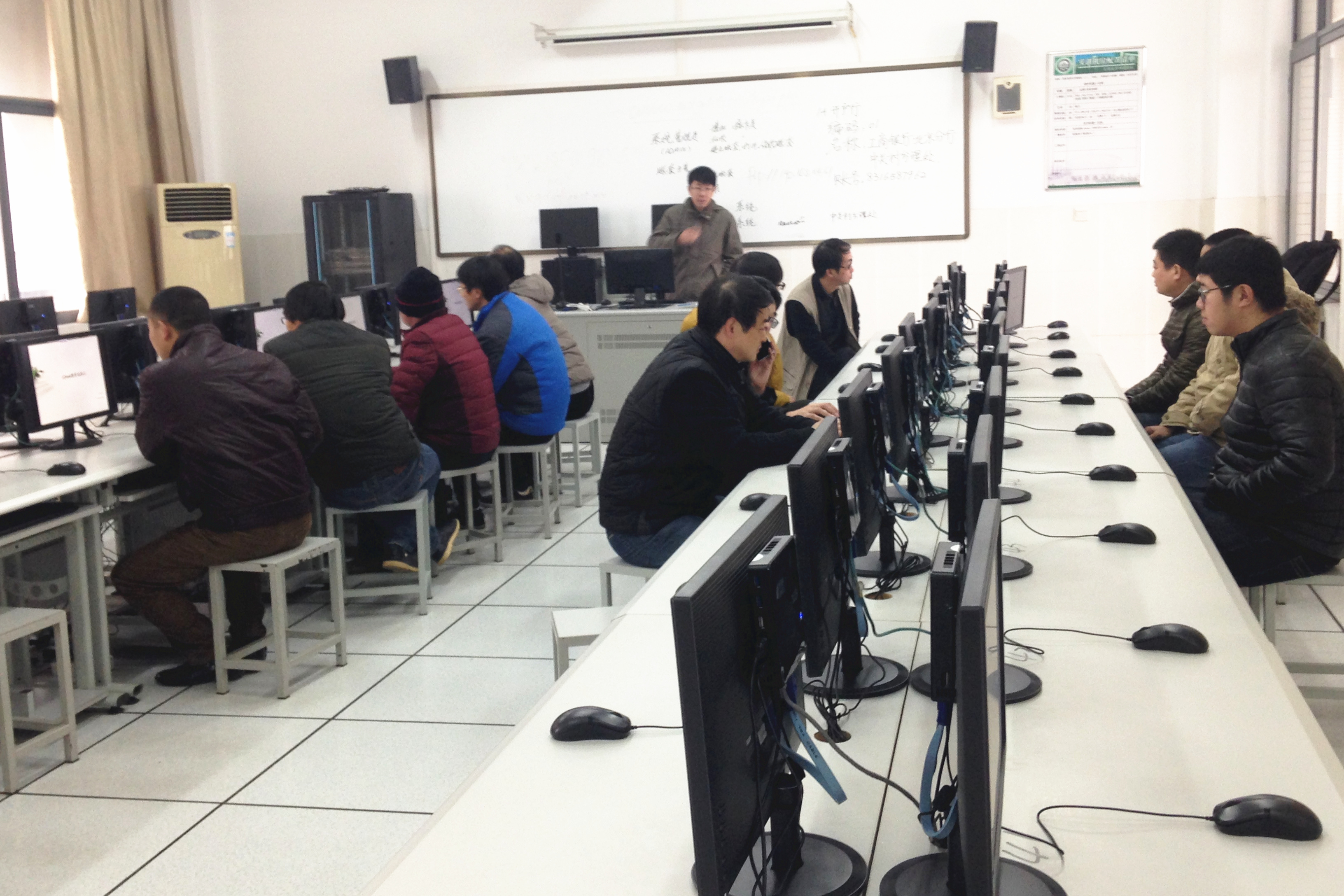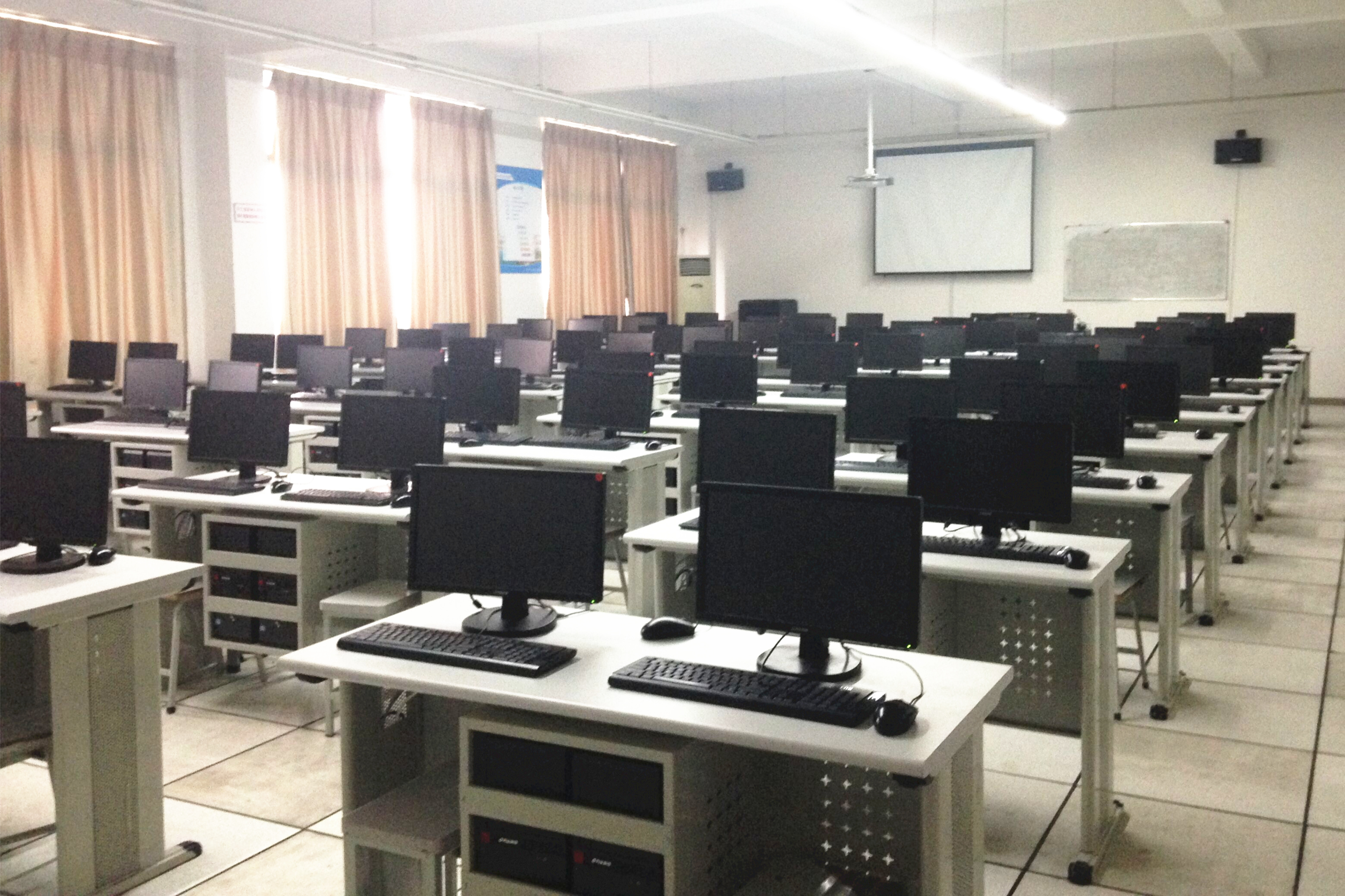 近日,在教务处和实训中心共同协调努力下,我院实训中心教学设施完成升级改造,本次升级改造涉及350张计算机教室课桌和100座云桌面计算机教室。