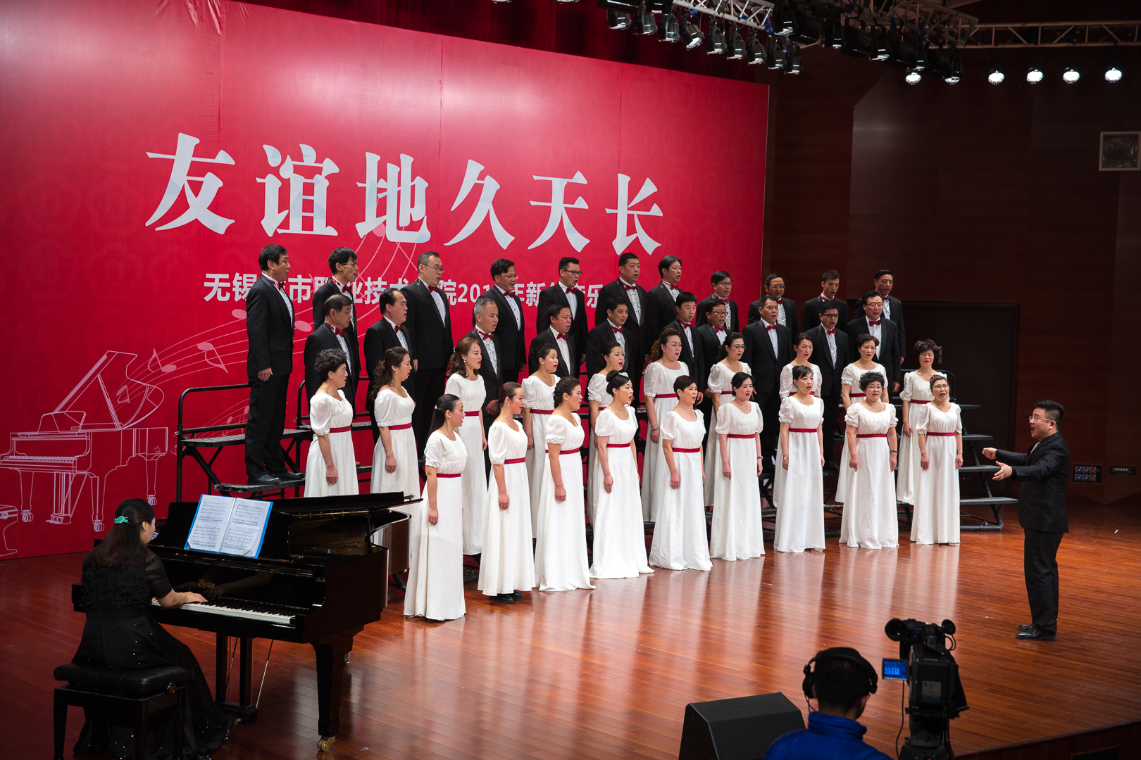 本次音乐会邀请了南京和谐之声合唱团、无锡山禾合唱团、无锡太湖美合唱团与我院客座教授、白俄罗斯钢琴演奏家奥莉卡·萨玛苏耶娃老师以及校合唱团共同交流,演绎了一场精彩的视听盛宴。