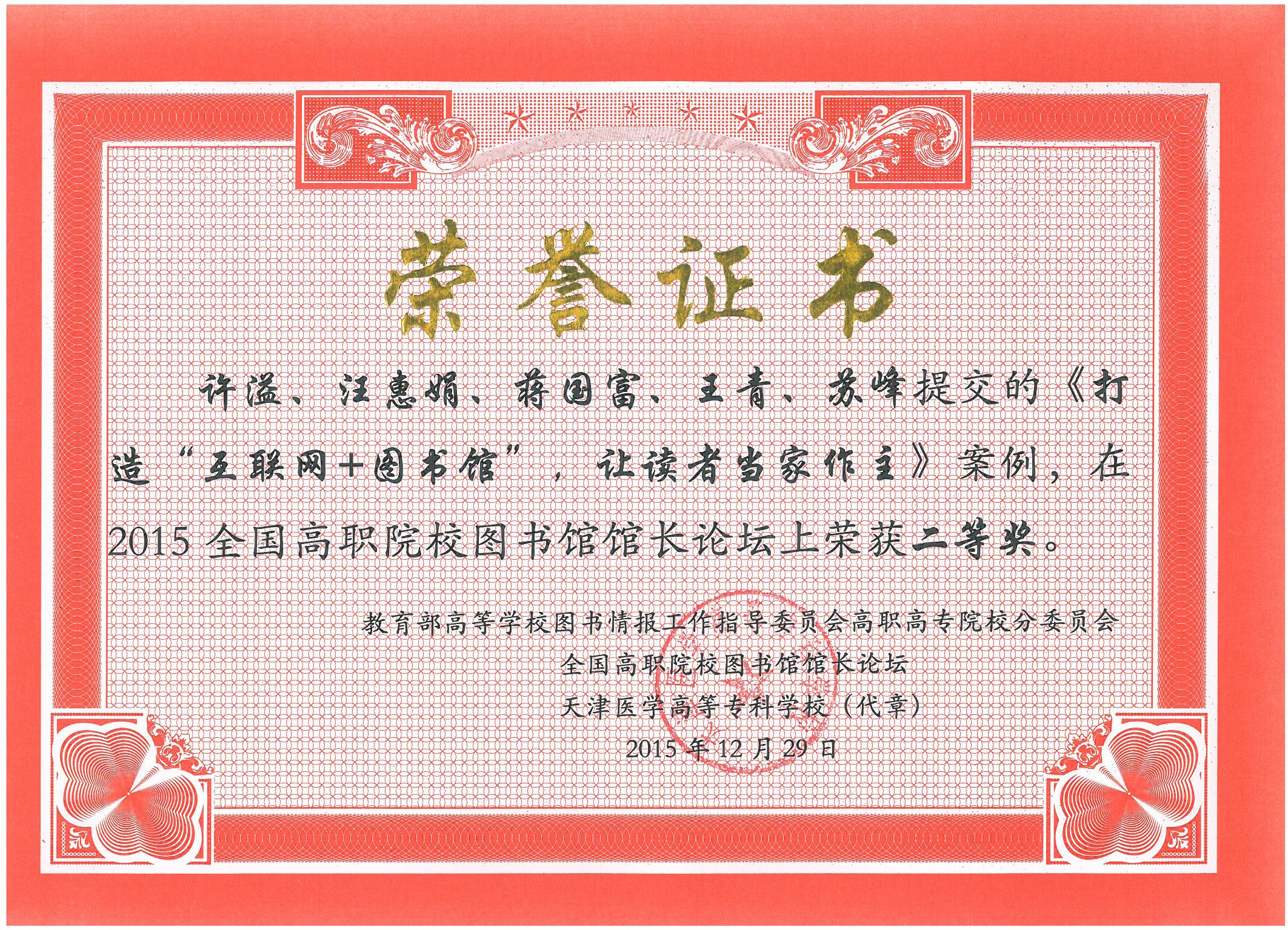 12月28-31日,2015教育部高等学校图书情报工作指导委员会高职高专分委员会年会暨2015全国高职院校图书馆馆长论坛会议在哈尔滨职业技术学院召开。本次年会对全国高职院校图书馆创新服务案例大赛的参赛案例进行了评比,我院图书馆成果喜人,所提交的两项案例分获二等奖和三等奖。