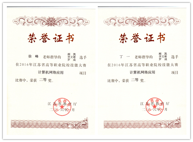 | 我院代表队在江苏省职业技能大赛“计算机网络应用技术”项目中喜获二等奖 | ||||