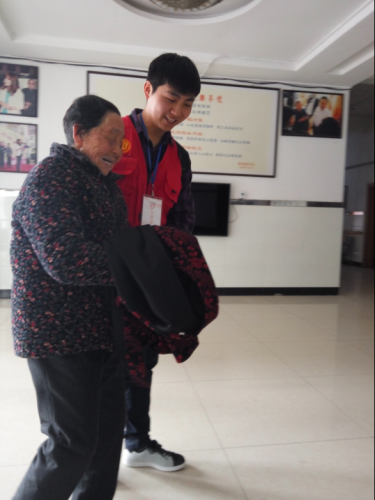 当国贸中职1501班余汪洋同学搀扶余奶奶回房间休息的一刻被拍成画面后,这一刻将雷锋精神尽显,也将和谐风貌尽显。今年是毛泽东等老一辈革命家为雷锋同志题词53周年,也是第17个中国青年志愿者服务日。为了传承雷锋精神,深化青年志愿者行动理念,贸易金融学院与共建服务单位——无锡市惠泉颐养院开展“传雷锋精神、倡文明新风”的学雷锋志愿服务活动。贸易金融学院青年志愿者小分队三十人穿上红色马甲,给惠泉颐养院的爷爷奶奶打扫卫生、谈心聊天、揉肩捶背,三个小时的慰问服务转瞬即逝,爱是搭建年龄分层的桥梁,颐养院的爷爷奶奶们对志愿者的到来感到非常高兴,志愿者们给他们平淡的生活带来了生机和乐趣,更让他们感受到了浓浓的爱意。
