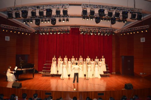 本次歌咏会由小学教育(音乐方向)专业师生出演。演出由一首纵情演绎的独唱歌曲《我亲爱的爸爸》拉开了序曲,此曲旋律优美,情感真切。1501班全体同学共同演唱了《萤火虫》以及《哎哟妈妈》,“萤火虫,萤火虫,慢慢飞……”宁静的夜晚,漫天的萤火虫,观众恍若身临其境。《预感》那低沉浑厚的嗓音的演绎,犹如知音娓娓倾诉,淡淡的哀伤氤氲在整个音乐厅,使人深深沉醉。1401班合唱曲目为《卷珠帘》以及《美丽的村庄》,《卷珠帘》有一种哀伤的情绪,淡淡的古典韵味,带来一种沉静而悠远的意境,无法触及的思念;而《美丽的村庄》以欢快,活泼,热情的节奏给人以轻松愉悦的心情,这两首歌曲相得益彰。《中国大舞台》满目红色,慷慨激昂,演唱着中国五千年一幕幕的沧桑巨变。1305班合唱的《老师我想你》,《美丽的草原我的家》,一曲深情,一曲广阔,给观众以不同的不同的感受,却深醉其中。《七月的草原》这首花腔女高音歌曲,节奏欢快,音色清亮穿透力强,表现了演唱者非凡的功底。此次音乐会随着1204班的合唱《二十年后再相会》进入尾声。此曲是对未来深深地期盼与期待,也象征着师范学院“红五月”精神将不断延续。