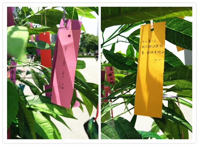 此次系列活动经前期认真组织筹备,主要涵盖两大板块进行。一是在5月25日当天在食堂北门进行广场宣传,包括心理健康知识宣传,分发印有心灵成长语录的书签,在心声树上悬挂自己的小心愿,在印有“和谐校园、和谐社会、美丽心灵”的横幅上进行集体签名等内容。这些新颖有趣的形式吸引了上百名同学积极参与,现场反响热烈;二是进一步扩大心理健康周活动覆盖面,通过与班级团日活动结合的形式,通过观看心理电影、心理素质拓展活动等形式让同学们认真参与到心理活动中,并在过程中有所体会和收获。
