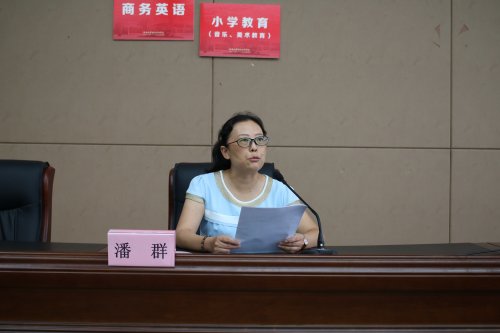 党总支副书记潘群就师范学院德育工作的基本情况做了介绍,并就学生思想、组织发展、后期入学教育、开学典礼、军训工作等事宜做了布置,让学生明确了需要完成的具体事务和今后可以发展的方向;她希望新生能够注重自我能力的培养,多与老师、同学交流、沟通,尽快适应新的学习和生活环境。