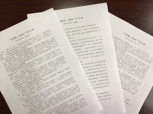 10月12日下午,机关五支部党员在图文信息中心六楼会议室开展“立家规、正家风”专题学习讨论会。 家风,体现家族传统文化风尚和作风。自古以来,注重家风是中华民族的优良传统。古有 “孟母三迁”、“岳母刺字”,近有《曾国藩家书》、《傅雷家书》,家庭是我国传统文化和传统教育的重要组成部分,优良的家风家教承载着我国优秀传统文化中的精髓,对一个人修养品行、价值观形成起着至关重要的启蒙作用。“不论时代发生多大变化,不论生活格局发生多大变化,我们都要重视家庭建设,注重家庭、注重家教、注重家风……”习近平提出的强调家庭建设的重要性是对优秀传统文化的传承。家风好则党风正,党风正则根基稳,党员应当是广大群众中的一面先进旗帜,需要发挥先锋模范带头作用,自觉在家庭生活中担当起弘扬正气、传播正能量、践行社会主义核心价值观的光荣职责和使命。 共产党人的家风,其实也是党的优良作风。《中国共产党廉洁自律准则》,首次将“廉洁齐家,自觉带头树立良好家风”列入其中,促进党员干部塑造良好的道德品行、价值观念和行为方式,好家风是做“合格党员”的基础。当前开展的“两学一做”学习教育活动,广大党员干部要在立家规、正家风的过程中,充分发挥带头作用,使中华民族的传统美德和共产党员的先进性,在家庭环境里传承下去、源远流长。 各位党员就加强家庭建设、培养良好家风进行了深入交流讨论,党员们结合自身成长经历,将家庭故事以及家风家规等内容与大家分享,肯定了家规家风在成长中的教育引领作用,并表示要与时俱进传承家规家风,做到言传身教、身体力行,发扬光大中华民族传统家庭美德,以实际行动感召社会群众积极投身建设家庭和谐、社会和美的社会活动中。 学习讨论会现场 党员撰写的学习心得