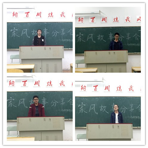 为促进党员师生加强家庭建设、培养良好家风,推动“两学一做”学习教育更好地融入日常工作和生活。传媒与艺术设计学院党总支下辖两个党支部分别举办传承优良家风家训主题活动。此次活动,是倡导社会主义核心价值观,贯彻落实习近平总书记关于家风建设有关论述开展的实际行动。 10月13日,传媒与艺术设计学院学生党支部举办“立家规正家风”故事分享会,学生党支部书记李宁宁老师与支部党员、入党积极分子共同参加活动。活动伊始,李老师首先带领大家认真学习了习近平总书记关于家庭建设的重要论述,并主动亮出个人家规,与支部成员们一起分享了在家风家训影响下,工作和生活中感人的故事,共同体会朴实家规家风的背后力量。随后,同学们经过精心准备,依次登台,或讲述祖辈传承家风家规的感人故事,或展现优良家风的历史典故,或表达自己对家风及中华传统美德的理解,声情并茂地传递着优良家风的正能量。 10月18日,传媒与艺术设计学院教工党支部传承优秀家风家训活动——“立家训、扬家风,建设模范好家庭”在学院会议室举行。党总支副书记刘芳同志首先带领大家重温习近平总书记关于家风建设的系列论述,以此作为此次活动的正式开启。随后,各位老师相继讲述各自的家训、家风故事。曹海洋老师的家训是“是非面前不含糊,原则问题守底线”;龚瑜老师的家训是“遵纪守法,与人为善,严己宽人,勤学上进,诚信至上”;陆晓俊老师的家训是“尊祖敬宗,家庭和睦;与人为善,与邻为友;勤学苦练,努力攀登;团结友爱,永夺先进”;贾佳老师的家训是“勤字工夫,第一贵早起,第二贵有恒;凡将相无种,只要人肯立志,都可以做得到”。除了家训,各位党员教师也对自己的家风故事做了深入动人的讲解,讲到动情处党员教师更是几度哽咽。各位党员教师都对此次活动的意义和价值给予了高度认可。 本次分享活动加深了师生对党员家风建设重要性的认识,全体党员在分享中认识到:每个家庭都有自己的家训、家规、家风,好的家训、家规、家风不仅承载了祖辈对后代的希望,对后代的鞭策,也同样体现了中华民族优良的民族之风,家风影响人生,家风决定国运。作为教书育人的高职院校,党员教师们应主动承担文化传授的责任,教好书,育好人,传递正能量。 学生支部家风分享会现场 同学们各自讲述自己的家风故事