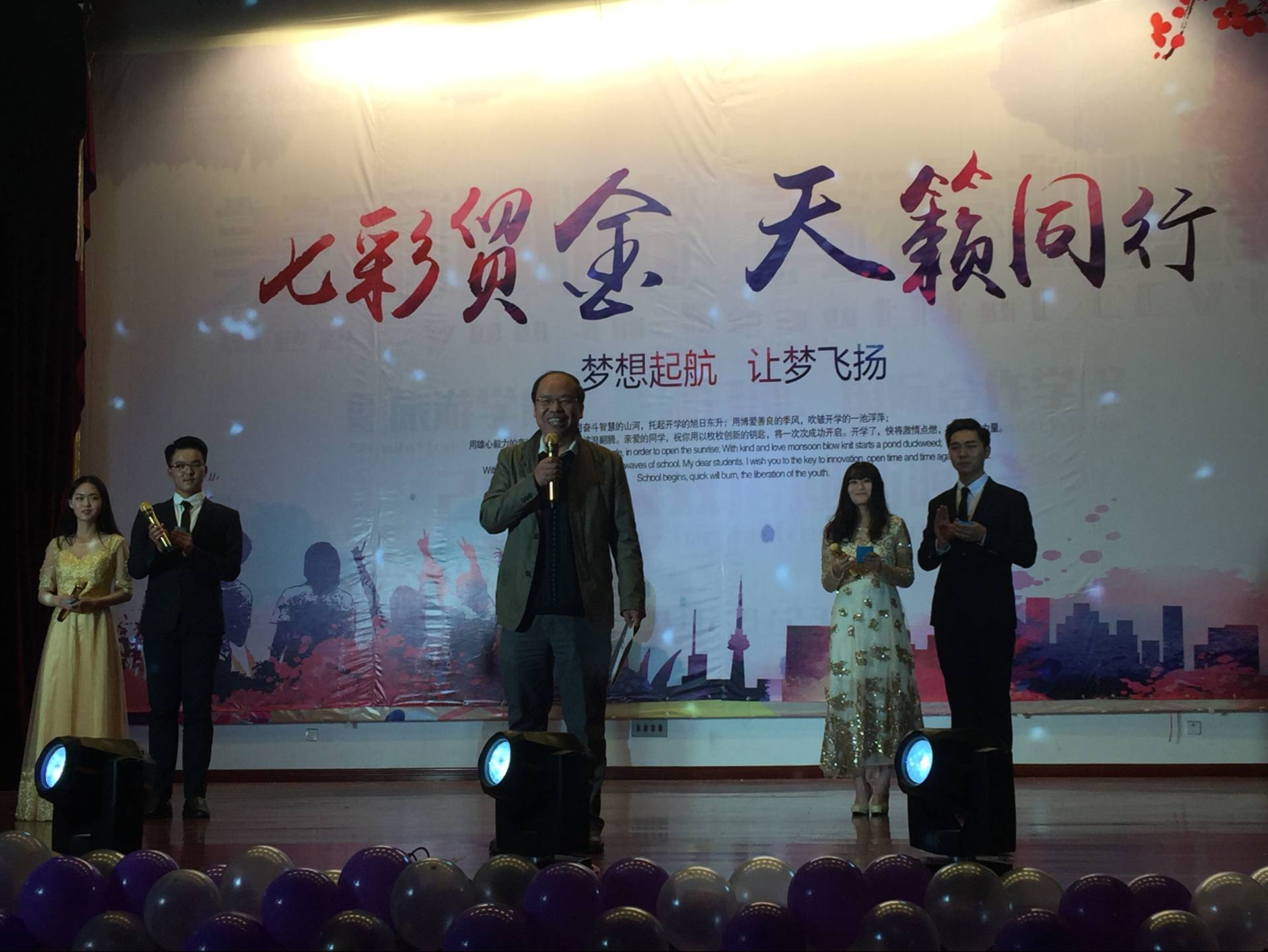 院长应可福教授为本场晚会致词。“洪荒之力,传扬弘毅”体现了应院长对贸金学子的殷切期望。