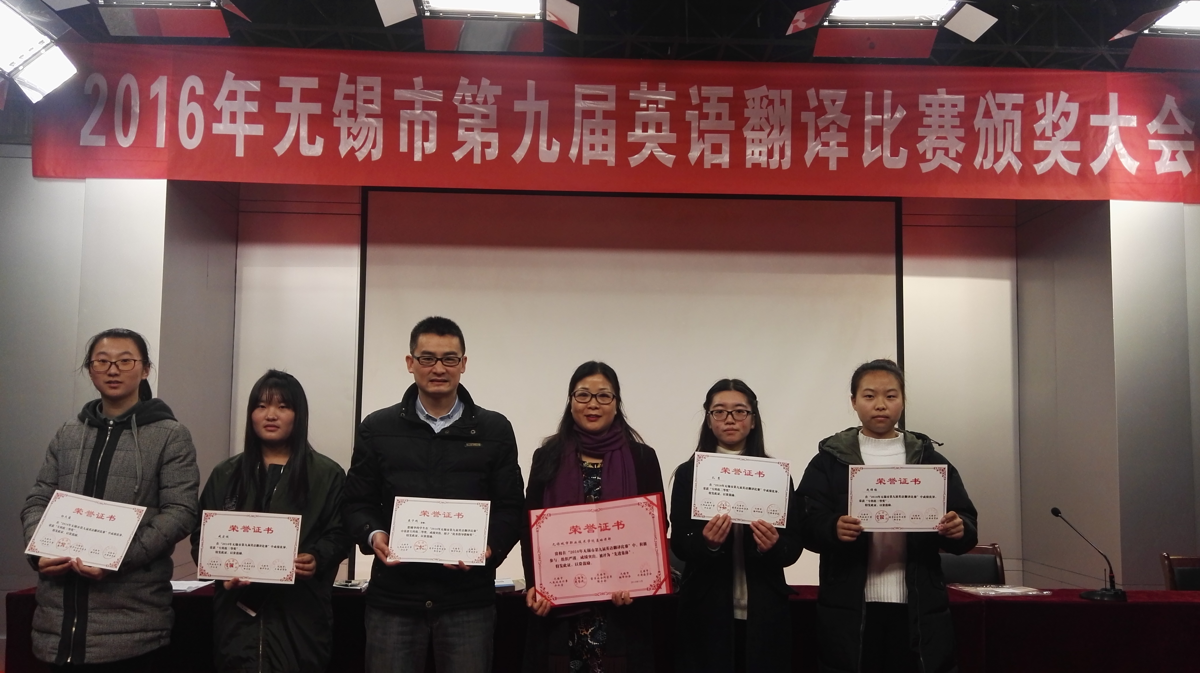 | 我院获奖学子和教师代表参加无锡市第九届英语翻译(笔译)比赛颁奖仪式 | ||||