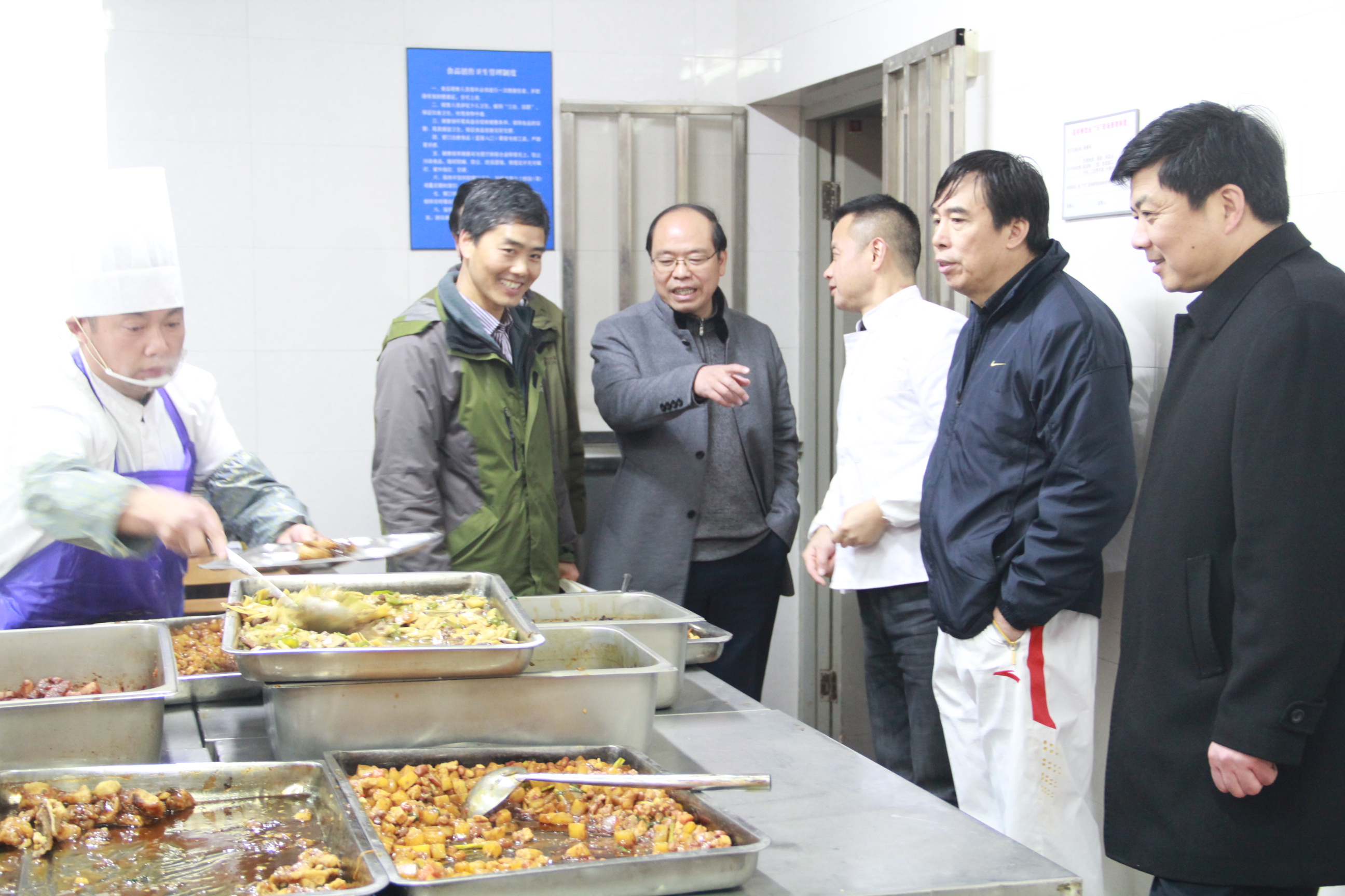 2月20日,我院院长应可福、副院长陈新、院办主任沈国裕、学工处处长苏兴华等在后管处领导的陪同下,到北校区食堂检查新学期食品安全及开学相关工作情况。应院长一行现场听取了餐饮中心姚明兴主任对有关食堂调整的新项目及提升服务质量的措施的汇报,并与现场经理、工作人员等进行了交流,了解实际情况。应院长对新学期食堂整洁的环境、良好的秩序、丰富的菜品、热情的服务给予了肯定,并就新学期学院食品安全工作作出指示。