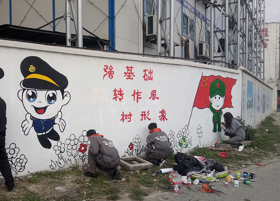 艺术学院“匠心社”学生志愿者在进行墙绘创作