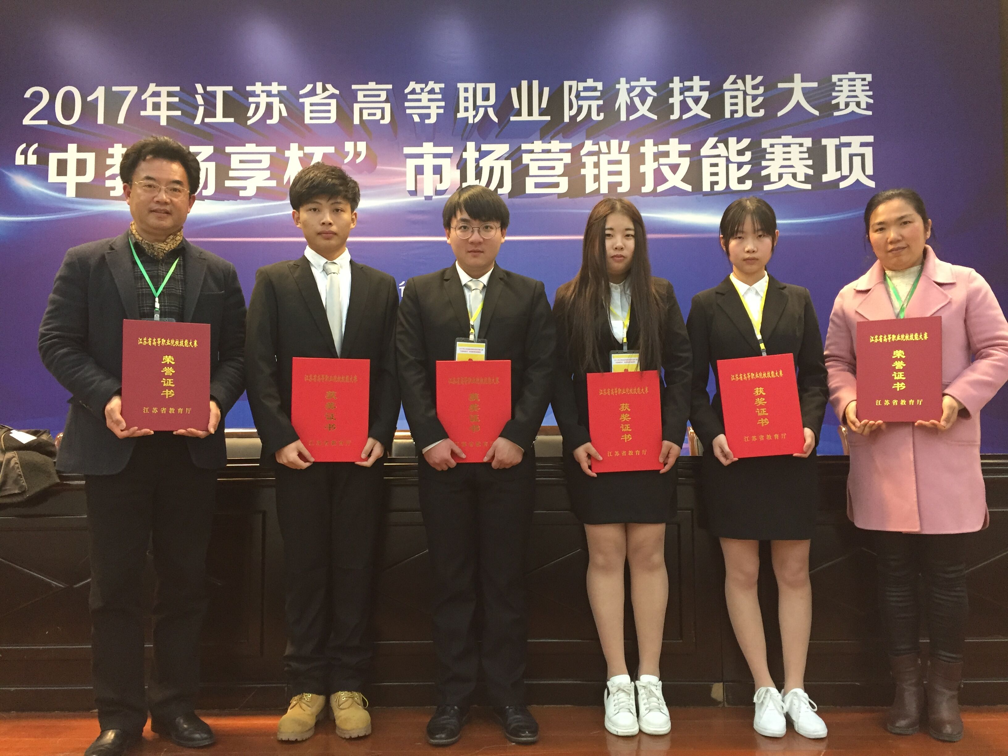 3月9日到11日,由沈晨昊、刘丽君老师指导,张海天、孔晨至、戴伟、朱洁四名同学组成的代表队,在无锡商业职业技术学院与来自全省的其他47支高职院代表队的188名选手展开了激烈地竞争。参赛选手不畏强手,沉着应战,经过两天三个项目的激烈角逐,获得“中教畅享杯”市场营销技能赛项团体三等奖。