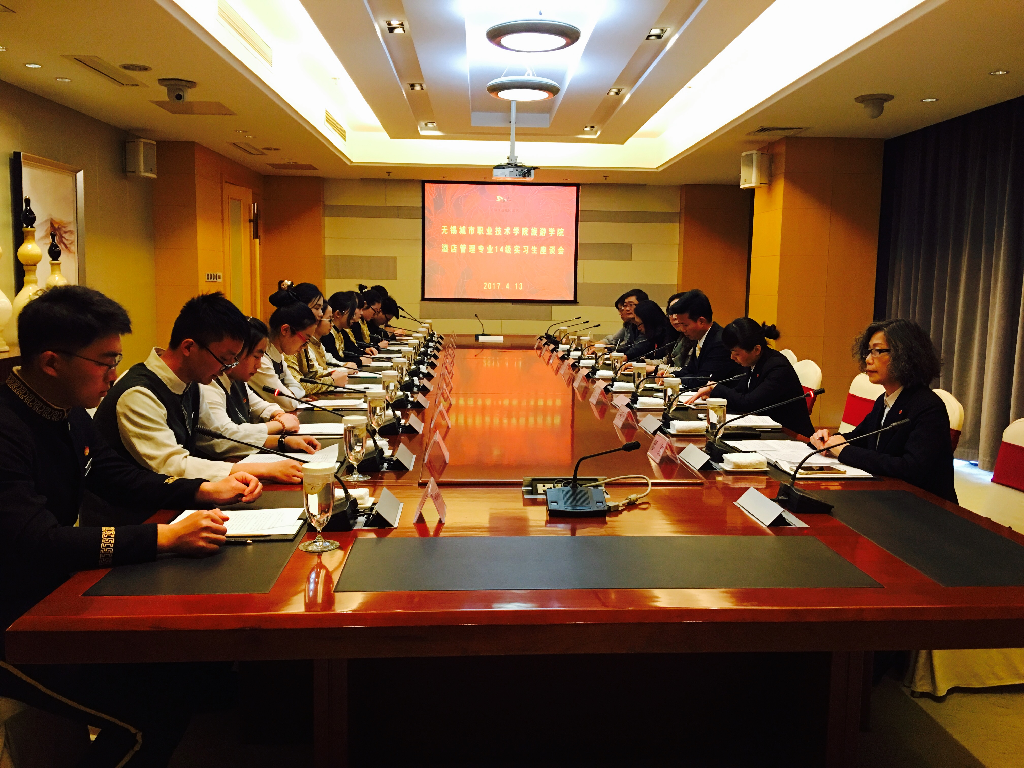 4月13日,无锡艾迪花园酒店在多功能会议厅举办了“无锡城市职业技术学院实习生实习座谈会”。无锡市艾迪花园酒店党总支书记、董事长、总经理陈善军,无锡市艾迪花园酒店副总经理倪彩亚、钱晓芳,人力资源总监廖红,我院旅游学院副院长李光宇、党总支副书记陈霞、办公室主任徐群征及旅游学院实习生代表一同参加了座谈会。
