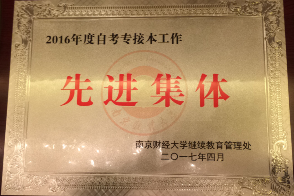 会议上,南财大领导总结了2016年全省“专接本”项目的运行和考试情况,并宣读了《南京财经大学2016年度自考“专接本”工作先进集体和先进个人的表彰决定》,我院荣获南京财经大学继续教育管理处颁发的自考专接本工作“先进集体”称号。