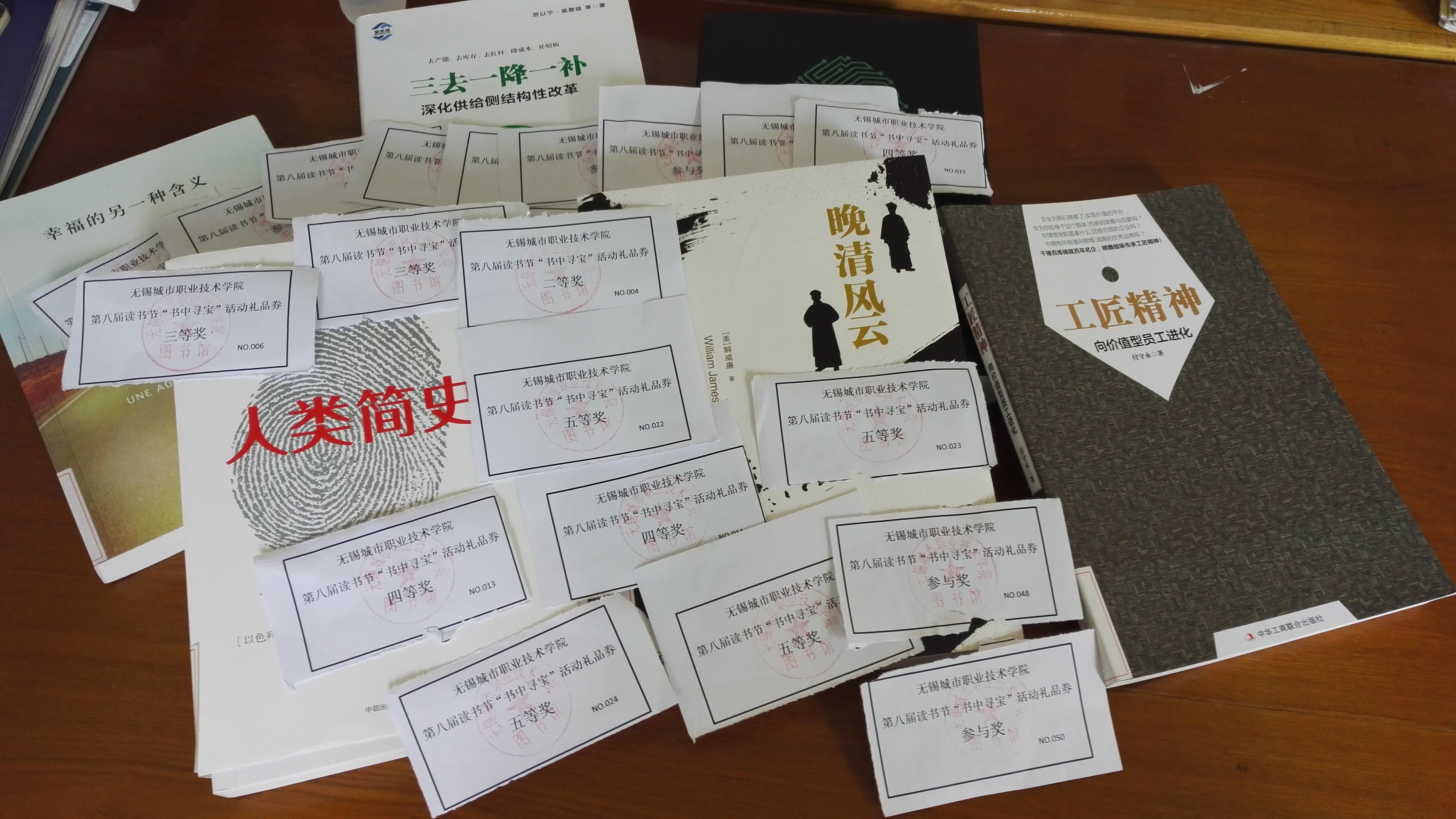 “书中寻宝”活动自4月24日开始,至5月19日结束。该项活动由图书馆文献资源部向全院师生推荐100本经典阅读书目,制作礼品卡藏于分布在南、北校区图书馆各典藏库的百部好书内,借阅该书的读者即为幸运读者,可获取礼品卡中标注的礼品。此项活动旨在鼓励全院师生充分利用馆藏资源,通过对古今中外名篇名作的诵读,进一步激发学子们的读书兴趣和读书激情,提高学生的人文素养和艺术鉴赏能力。