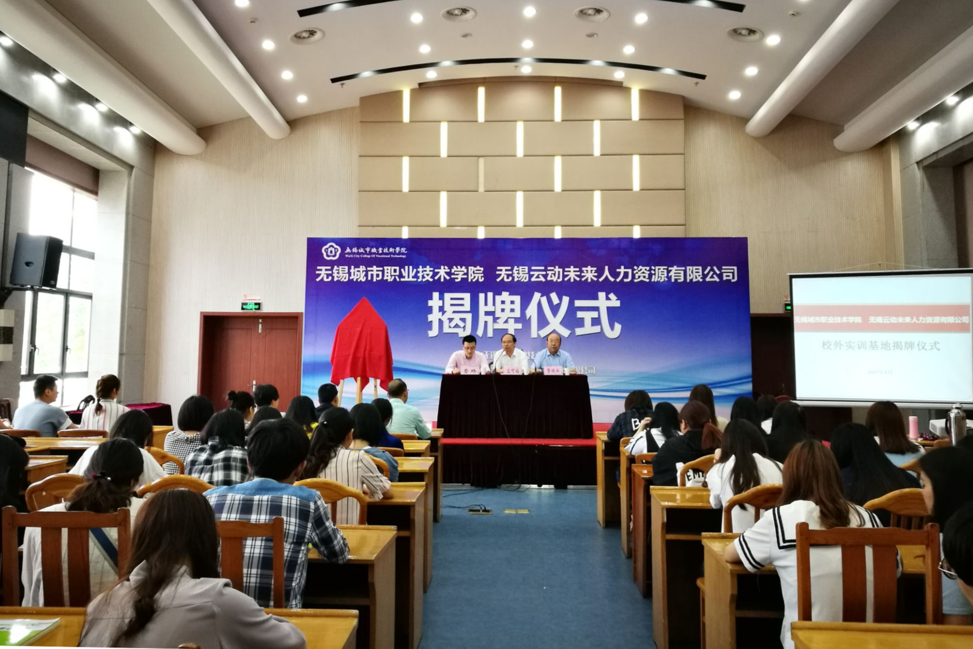 院长应可福,云动未来人力资源有限公司总经理曹玮共同为“无锡城市职业技术学院校外实训基地”揭牌。