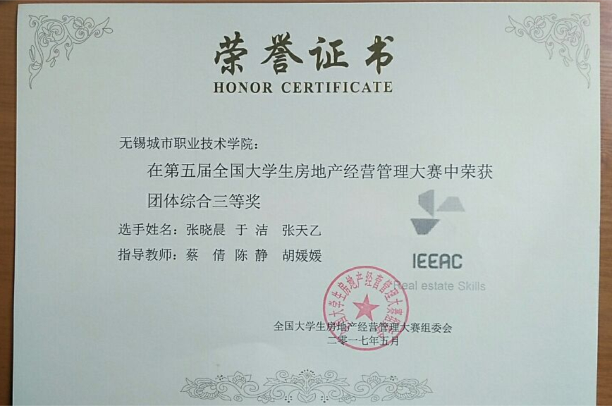 本次大赛取得的优异成绩及较高的行业影响力,充分反映了我院房地产经营与管理专业近年来在教学改革方面取得了一定成效,今后学院将继续探索借助技能大赛培育应用型人才的新路子,“以赛促教、以赛促学、以赛促改、以赛促建”,通过实践提高学生应用能力。