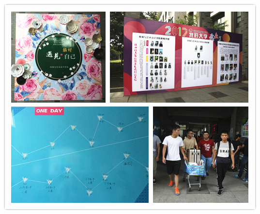 各二级学院将各自独特的学院文化与迎新方式巧妙结合,让学生和家长在踏入校园之初就感受到了亲切的氛围。会计学院充分发挥专业优势,统计制作2017级会计学院新生大数据盘点,大数据的展示使得每一位报到的新生对本届同学有了亲切直观的了解,也为后续有针对性地开展新生管理工作提供数据支持。“愿你是永远奔腾的千里马,祝你早日成才”,“好好享受大学生活的同时,也要时刻为自己的梦想而奋斗”……贸易金融学院学长学姐们的寄语被制作成书签送到新生手中,让新同学第一时间感受到学长学姐们的温暖与热情。旅游学院迎新工作人员身着统一服装,展示礼仪风采,该院新生们纷纷在新生签名墙上留言,留下来到城院的第一份印记。新成立的淘宝影视学院迎新区处处体现着“贴心”、“暖心”、“真心”,“城院手绘地图”为新生的到来指明学院道路方向,“新生手册”为新生“导航”了学院、专业、生活、安全、城市等学生迈入大学最关心的五大事,帮助新生们尽快融入新集体。传媒与艺术设计学院绚烂立体的迎新花墙夺人眼球,该院还为每一位新生家长准备了《写给家长的信》,详细列出学生在求学期间家长需要协助的注意事项,以确保每位新生顺利入学、放心上学。物联网工程学院将“城院的一天”做成展板,让新生第一时间熟知大学生活的时间安排。建筑与环境工程学院新生与家长纷纷在留影墙前合影留念,定格来到城院的第一刻,该院“弘毅青锋”学生团队全程服务新生报到。国际合作学院为新生提供一对一的温馨周到服务,让新同学感受到了家的温暖与关怀。南校区师范学院和会计学院的五年制新生入学工作在学院的精心准备和合理规划下,工作效率高、秩序好,圆满完成全部报到工作。