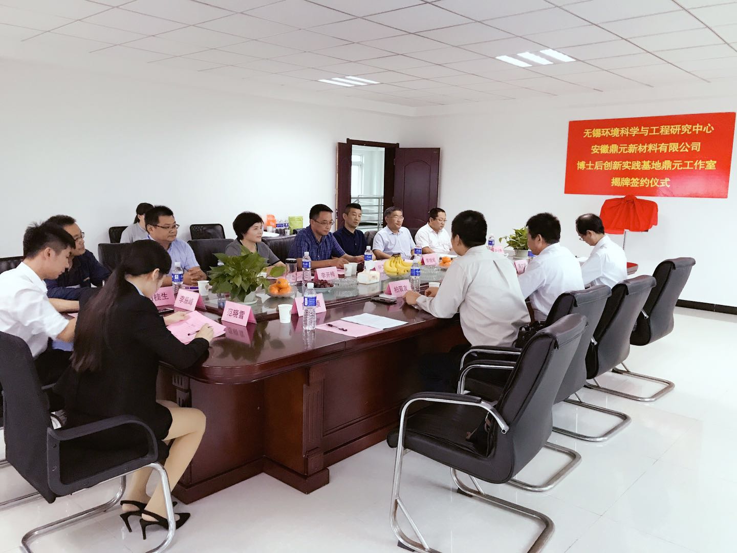 9月24日下午,我院首个博士后工作室揭牌签约仪式在安徽鼎元新材料有限公司举行。中共琅琊区区委常委、组织部长仲卫东,琅琊经济开发区管委会主任李继斌,安徽鼎元新材料有限公司董事长李开梅,我院党委书记高建宁为“无锡环境科学与工程研究中心博士后工作室”揭牌。出席揭牌仪式的还有琅琊区科技局、人社局、经信委、琅琊经济开发区管委会经贸发展局的领导、安徽鼎元新材料有限公司领导以及我院博士后团队部分博士后代表。