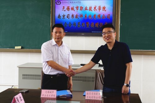 最后,院党委书记高建宁教授与南京司书软件系统有限公司曾健总经理共同签署了校企合作暨捐赠协议。此次校企合作捐赠签约仪式,是校企之间在多年来友好合作关系的基础上,进一步加深交流、增进感情、携手共建的良好互动。签约仪式的成功举办,标志着学院在校企合作的道路上又迈出了坚实的一步,也必将有力推动校企之间多方位、多领域的深入合作。