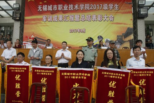 会上,院党委书记高建宁为承训部队赠送锦旗。党委副书记俞力元宣读了《无锡城市职业技术学院关于表彰2017级新生军事技能训练先进集体和个人的决定》。与会领导为获奖的先进集体、学生先进个人代表和优秀带训教师颁奖。张晶指导员代表承训部队讲话。