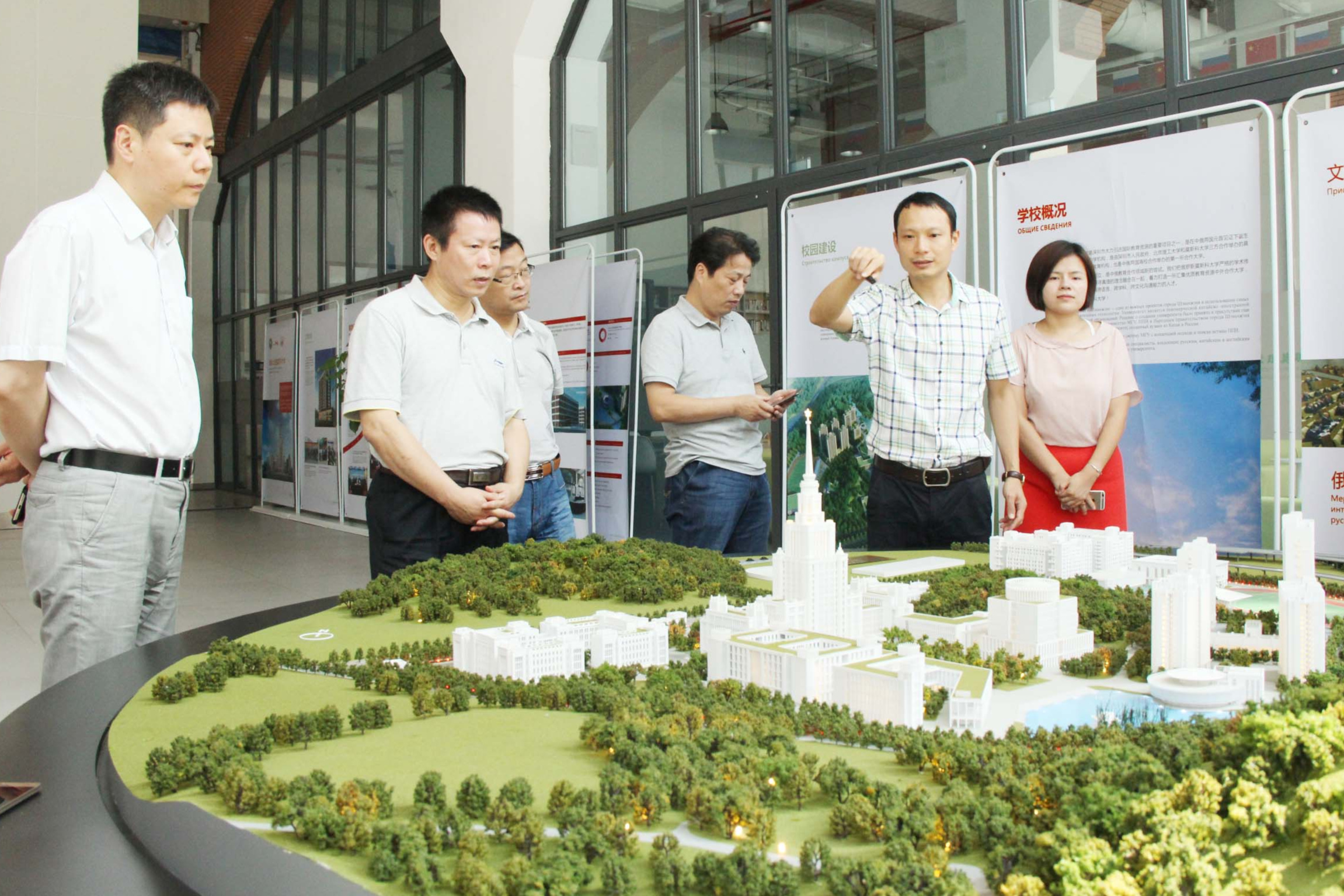 9月23日上午,高建宁书记一行来到深圳北理莫斯科大学,在该校校办窦主任的陪同下参观了该校模拟沙盘,听取了该校基本情况的介绍。深圳北理莫斯科大学是由深圳市人民政府、莫斯科国立罗蒙诺索夫大学和北京理工大学三方在深圳合作举办的一所具有法人资格的非营利高等教育机构,也是国内与俄罗斯首次合作办学。中外合作办学的重点在于规范管理和双语教学,目前,他们正在积极努力引进国外优质教育资源,借鉴和学习国外教育机构办学特色和管理经验,提高自身改革、发展的能力,提高其比较优势和核心竞争力。