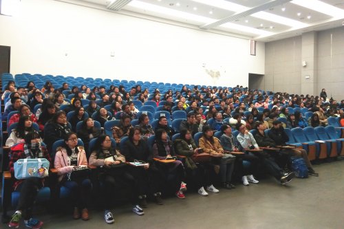 本次讲座,条理清晰,生动形象。同学们深受启发,陶行知先生熠熠生辉的师德光芒照亮着年轻一代准教师们明天的旅程。 殷丽萍老师作讲座 讲座现场 |