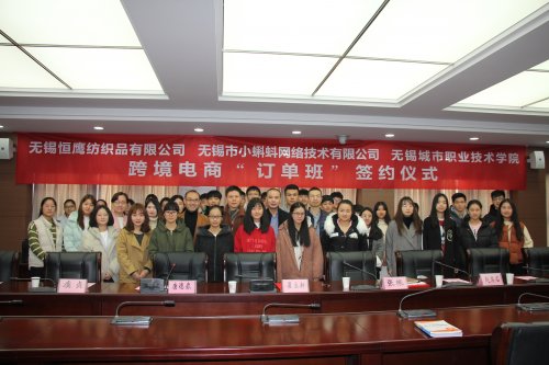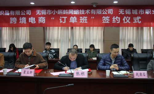 仪式上,瞿立新副院长代表学院与无锡恒鹰纺织品有限公司、无锡市小蝌蚪网络技术有限公司签订了跨境电商“订单班”合作协议。