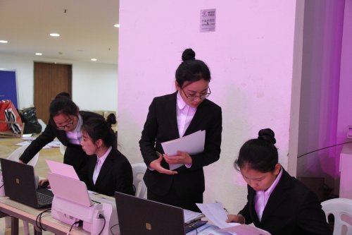 为做好此次啦啦操赛事的志愿服务,旅游学院对遴选出的40名志愿者进行了着装规范、服务态度、行为举止等方面的专业培训。比赛现场,旅游学院志愿者们充分发扬了“奉献、友爱、互助、进步”的志愿服务精神,圆满完成了啦啦操赛事的注册报道、礼仪接待、检录入场、现场安保、成绩记录等工作,以良好的工作作风、认真负责的态度、优质高效的服务得到了啦啦操组委、运动员以及观众的一致好评,并获得了大赛组委荣誉颁发的“最佳志愿服务团队奖”。