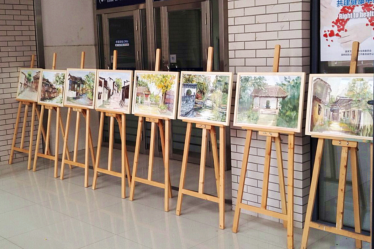 11月,师范学院动漫教研室多次组织2015级学生赴苏州西山明月湾和无锡惠山古镇进行风景写生,并取得了累累硕果。近日,我院对学生的写生作品进行了认真甄选,挑选出其中40幅优秀作品于12月4日至6日在学生活动中心门口广场进行展示,画展吸引了众多师生前来参观、欣赏和品评。