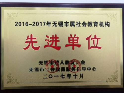 | 我院干部培训与继续教育学院获2016-2017年无锡市属社会教育机构先进单位 | ||||