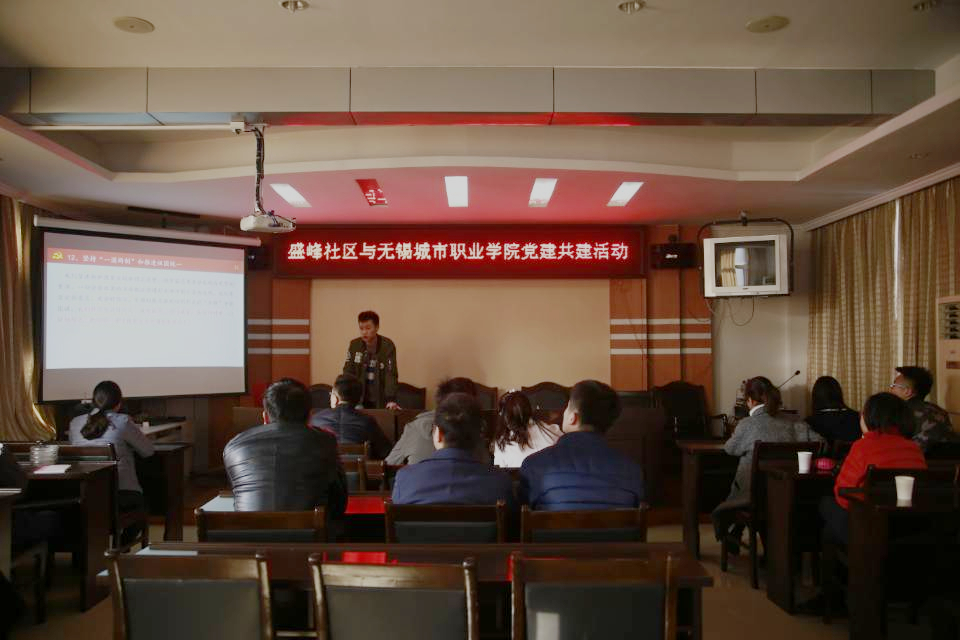 11月中旬,建环学院党总支书记汤宇红和学生党支部书记刘薇深入钱桥盛峰社区,与社区领导商讨校地党建共建工作。11月底,由师生党员、入党积极分子组成的青梦宣讲团积极开展十九大精神专题学习活动,深入社区解读十九大报告重要精神,强有力提升党员意识和能力。同时,还与盛峰社区共同开展公益活动,参与社区公益讲堂。