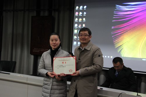 旅游学院学生支部书记徐群征向蠡园公园党政办公室主任朱丽敏颁发党团工作辅导员聘书