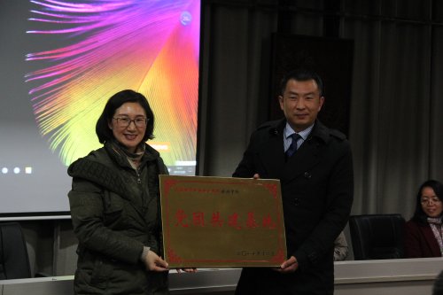 旅游学院党总支副书记陈霞向蠡园公园党支部书记杨小飞授予党团共建基地铜牌