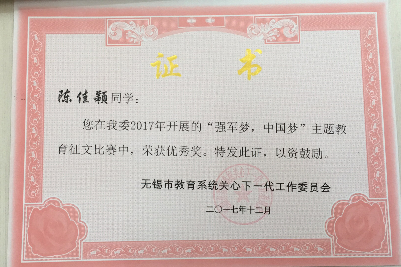日前,江苏省、无锡市教育系统关工委为纪念中国人民解放军建军90周年,弘扬伟大革命精神,增强青年责任担当,开展了“红星闪闪照我心”