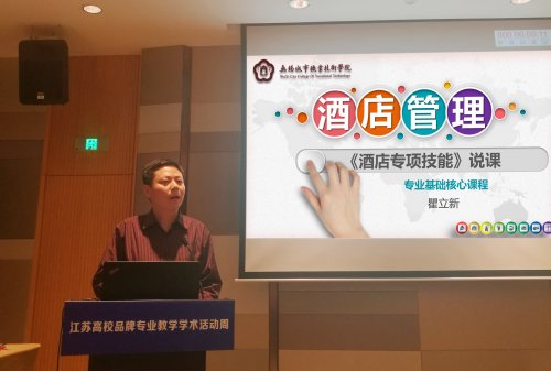 2018年1月3-4日,瞿立新、王建、俞洁华、邵映红、张立英、孙春艳、张一、张岩岩参加2017-2018年江苏高校品牌专业教学学术活动周。我院省级品牌专业——酒店管理带头人瞿立新,代表我院酒店管理专业进行专业核心课程说课,介绍我院酒店管理专业课程改革的最新成果,受到与会专家与教师好评。