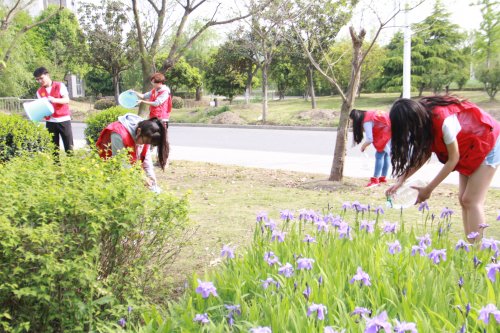 绿色。4月初,建环学院青年志愿者们在校园里开展“绿色城院,为爱浇水”活动。春天,城院的校园繁华开放、绿色萦绕、格外美丽,志愿者们自带工具为美丽城院献上自己的一份爱心。大家分成小组有条不紊地工作,提水、除草、浇水……美丽校园里留下他们青春与爱的印记。