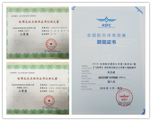 5月20日,全国航空模型公开赛在南京举行,物联网工程学院张志威同学使用自己独立制造的无人机航模参加遥控多旋翼飞机穿越赛,取得了全国第八名的好成绩。