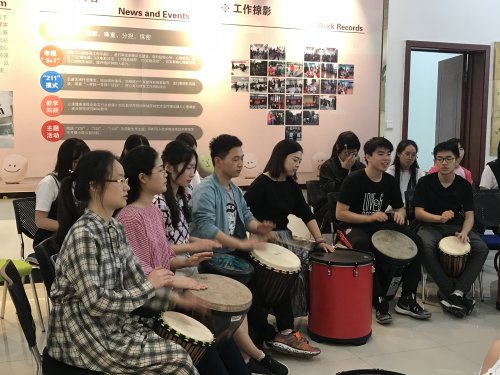 随后,国家二级心理咨询师、音乐治疗师、鼓圈引导师周灵临带领师生进行“乐动心灵鼓动青春”鼓圈减压与融合,在畅爽淋漓的鼓声中激发学生们的激情和勇气,学生们表示,感受到了团队和音乐的力量,打鼓后烦恼都消失了。
