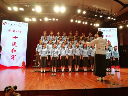 本次五月歌会分学前音乐专场和语创美术专场两场。各场演出都精彩纷呈。学前1703班的莘莘学子们身着绿色军装登上舞台,用响亮动听的歌声带来一首《十送红军》,饱含深情的演唱,将观众的记忆拉回了那个战火连绵的年代,触动了大家的赤子之心。学前1701班的学子们身着淡蓝色民国风制服,编着麻花辫,带来一首荡气回肠的战歌《绒花》,清亮的歌声带领观众翻开历史扉页,让豪情与壮志交织的信仰再一次点燃。同学们奋发向上的精神风貌和精彩的表演赢得观众的阵阵掌声。