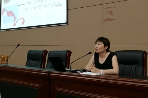 郭老师首先和同学们呈现了陶行知师德观的主要内涵:“捧着一颗心来,不带半根草去”的奉献精神;“人民第一、爱满天下”的爱心精神;“千教万教教人求真,千学万学学做真人”的求真精神;“敢入未开化的边疆,敢探未发现的新理”的创新精神;“共学、共事、共修养”的和谐精神;“活到老,学到老,教到老”的好学精神;“学高为师,身正为范”的自律精神。随后,郭老师又以一个长者和母亲的身份表达了对学生的期望,期望学生做一个有高度、有深度、有宽度、有力度和有温度的幸福之人,成就一段有意义的人生。最后郭老师向学生们推荐了一系列文学、教育、心理、生活方面的书籍和APP,希望学生们在陶行知师德观的感召下不断学习、终身成长。