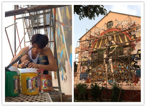 近期,传媒与艺术设计学院2015级学生伏彤彤携创作团队赴山东潍坊参加“艺术改变农村”涂鸦公益创作活动。伏彤彤和来自清华大学美术学院、中央美术学院、中国美术学院、南京艺术学院等各大高校的80余位年轻艺术家们,挥洒手中的画笔,让乡村旧貌换新颜。短短两个月,小村庄从原来色彩单调的“黄土地”变身为五彩缤纷的“露天艺术馆”,每天参观人数超过3000人。